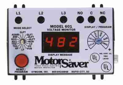 ![]() | * SymCom Motor Saver Model 601 is a fully programmable electronic voltage monitor designed to monitor three phase systems. |